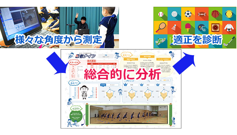 様々なプロスポーツ選手の分析結果データと照合し、どんな競技に向いているかを診断します。