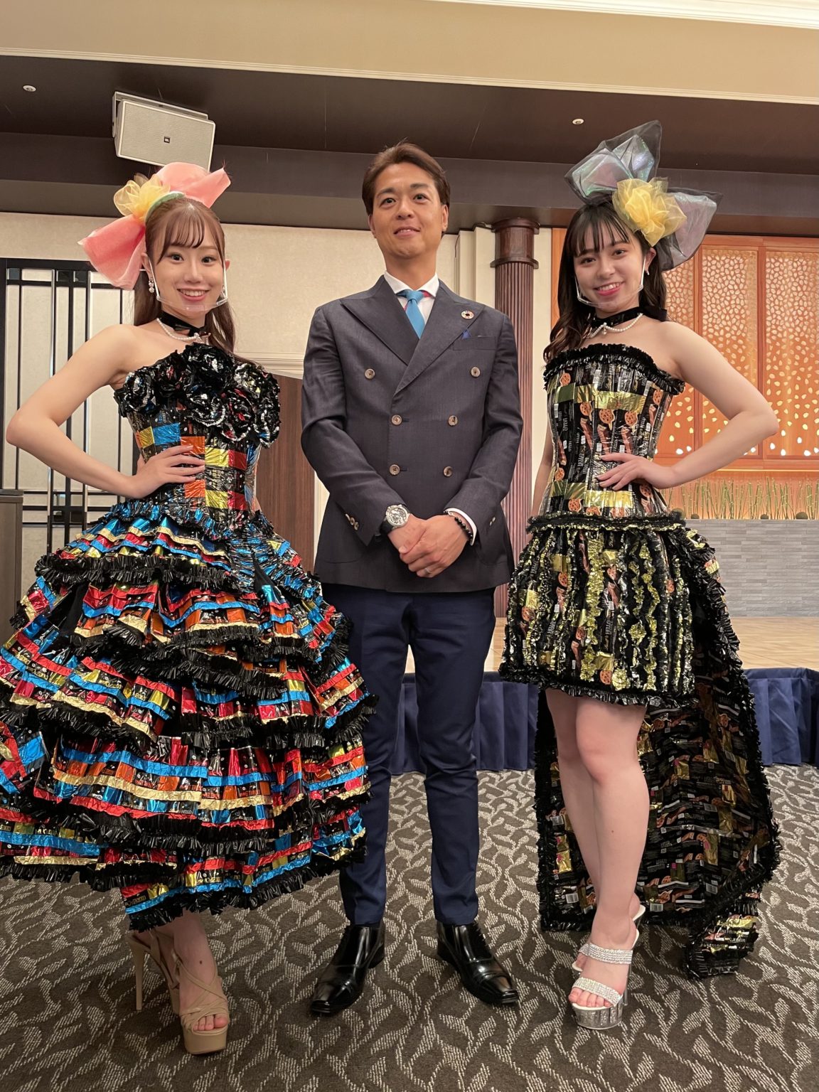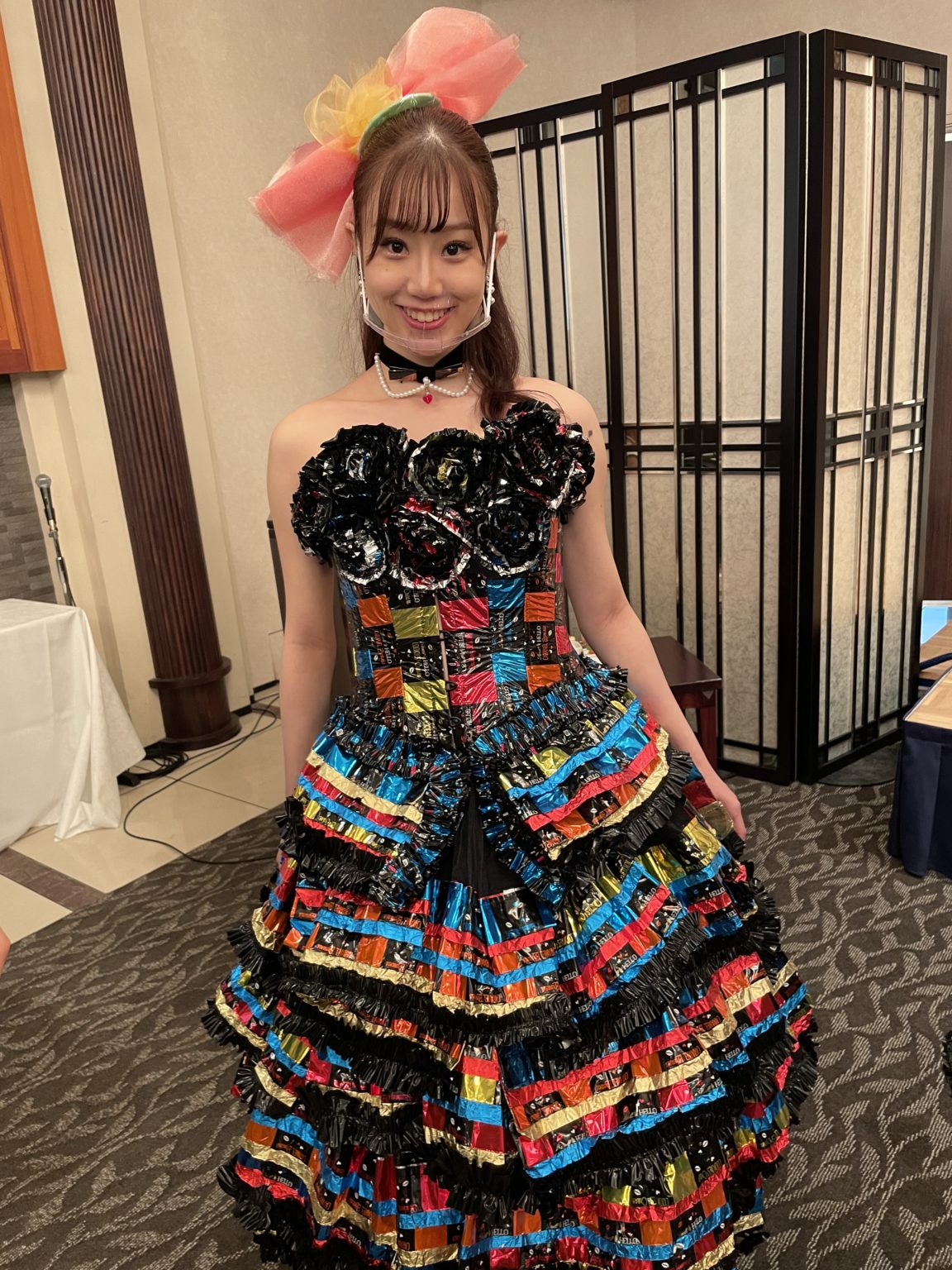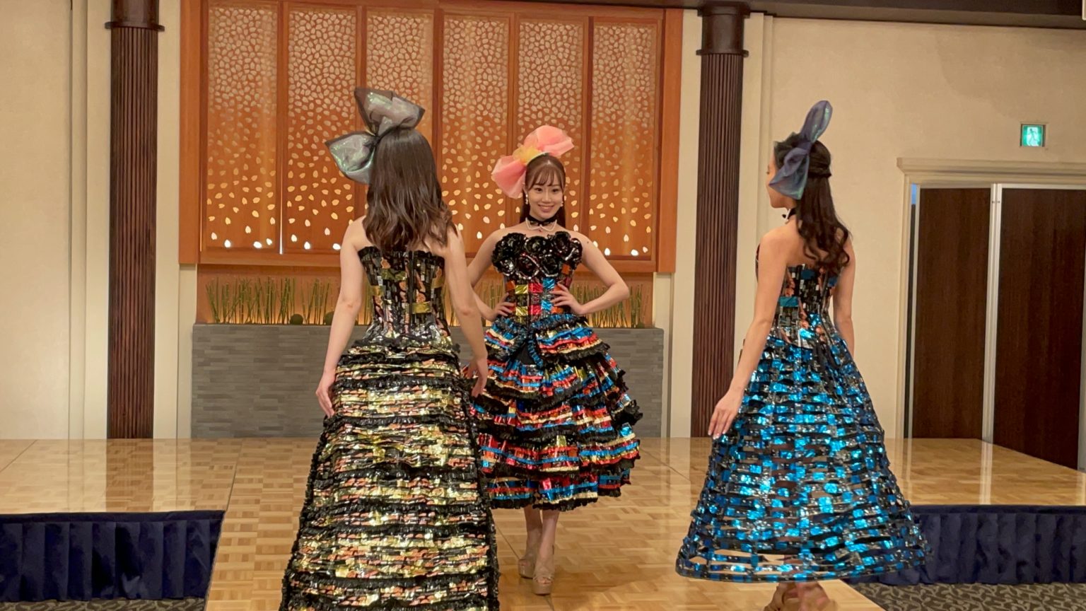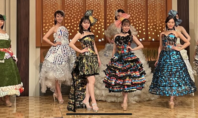 ファイナリストの一部がペットボトル、チョコレートの包み紙、レジ袋などで作られたドレスを着用