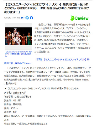 全国の大学生、専門学校生の中から日本一を決める日本唯一の全国版ミスキャンパス「ミスユニバーシティ」。 北海道から沖縄までの各県での地方予選(ベストオブミス県大会)が行われ、ミスユニバーシティグランプリとなった1名が、県の代表として秋に開催される「ミスユニバーシティ2021日本大会」に出場する。 今回、ファイナリストの一人、ミスユニバーシティ神奈川代表・保川のどかさんに話を聞いた・・・ |
