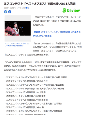 2019~2020年 ベストオブミスの4名が、yahooニュースに掲載されました!